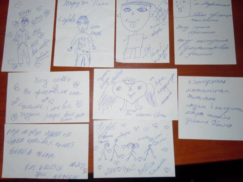 I was looking at pictures of the children from our visit in the fall of last year when Mark and I were at the orphanage in Marganets. I re-read short notes that the children wrote for us. I gave them an assignment to write their dreams of what they want to be when they become adults. Some children did not understand the task and just wrote short wishes and declarations of love, drawing pictures of us and writing “Mark and Sveta, we love you,” “Aunt Sveta, God bless you,” “I want you to come more often, we all will be glad to see you,” “we love you.”